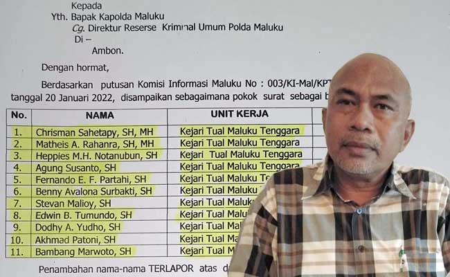 Ambon, MALUKU.News – Mantan terpidana korupsi, Aziz Fidmatan melaporkan 11 jaksa Kejaksaan Negeri (Kejari) Tual ke Polda Maluku, akibat melakukan pemalsuan dokumen dalam perkara korupsi pembangunan USB SMA Tayando Kota Tual yang diputus Pengadilan Tindak Pidana Korupsi Ambon 6 tahun lalu.