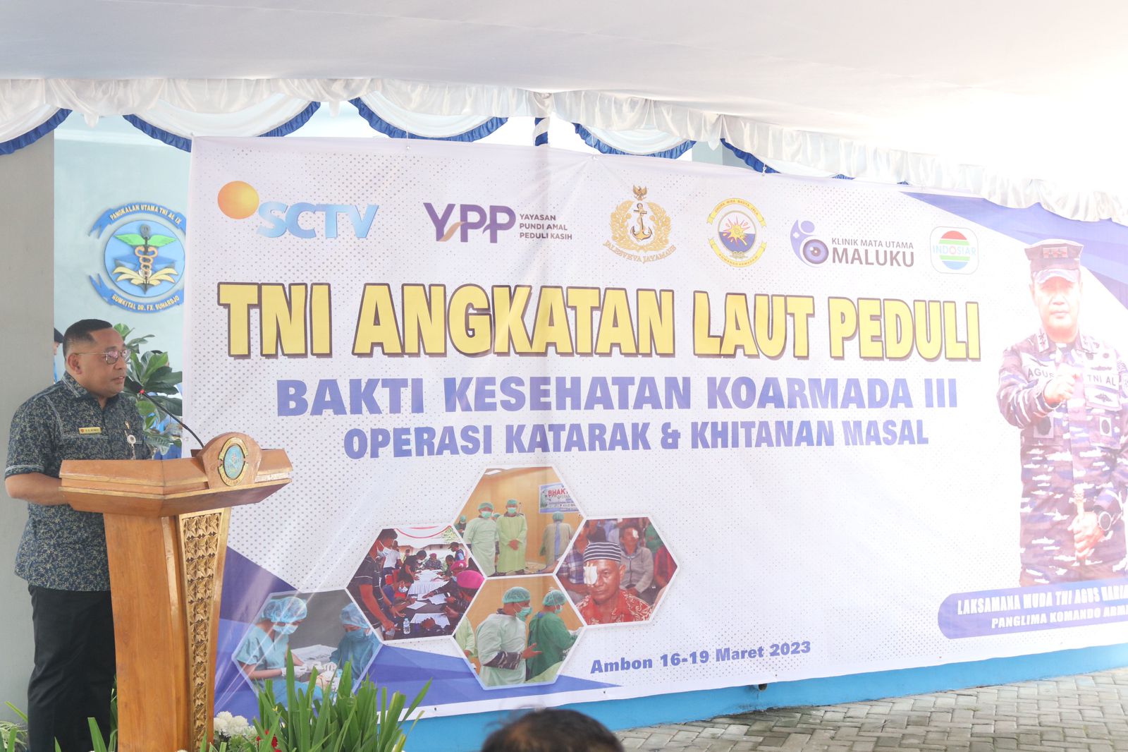 “Atas nama Pemerintah Daerah Provinsi Maluku, saya bersyukur dan memberikan apresiasi yang setinggi-tingginya kepada Komando Armada III Pangkalan Utama TNI Angkatan Laut beserta seluruh Jajaran Lantamal IX, yang telah menggelar Bakti Sosial berupa Operasi Katarak Mata dan Khitanan Masal,” ungkapnya.