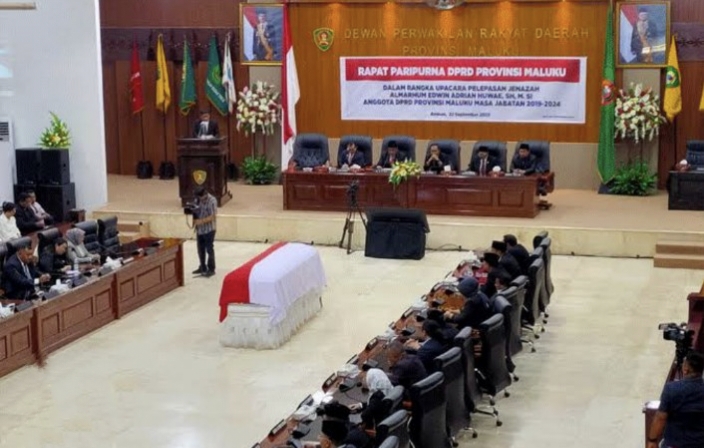 Ambon, Maluku.news – Dewan Perwakilan Rakyat Daerah Provinsi Maluku menggelar Rapat Paripurna Pelepasan Jenazah Almarhum Edwin Adrian Huwae, SH, M.Si, Anggota DPRD Provinsi Maluku Masa Jabatan 2019-2024, pada Jumat (22/9/2023).