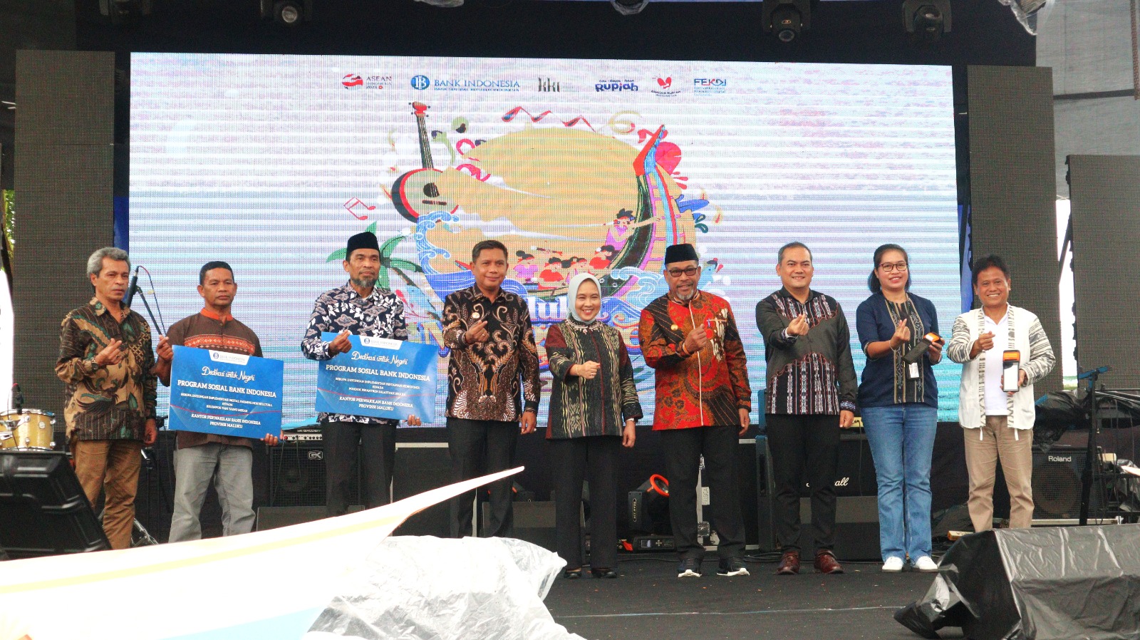 Kegiatan dilanjutkan dengan penyerahan bantuan program sosial bank Indonesia dan peninjauan Booth UMKM oleh Gubernur didampingi Ketua Dekranasda, Deputi Gubernur BI, dan seluruh pihak terkait.