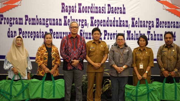Ambon, Maluku.news – Dalam rangka meningkatkan sinergitas dan kolaborasi bersama dalam upaya percepatan penurunan stunting, maka Pemerintah Provinsi Maluku bersama Badan Kependudukan dan Keluarga Berencana Nasional (BKKBN) menggelar, Rapat Koordinasi Daerah Program Pembangunan Keluarga, Kependudukan, Keluarga Berencana dan Percepatan Penurunan Stunting Provinsi Maluku Tahun 2024, yang bertempat di Hotel Santika, pada Selasa (27/02/2024).