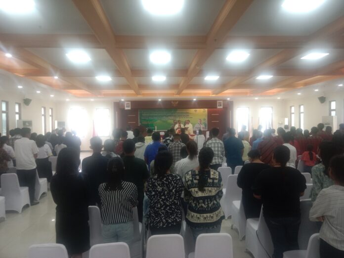 Uskup Diosis Amboina Mgr Seno Ngutra Pr menjadi selebran utama didampingi Pastor Igo Refo Pr. Uskup menyambut baik pelantikan ketiga pengurus ketiga organisasi, yang diawali dengan perayaan ekaristi.