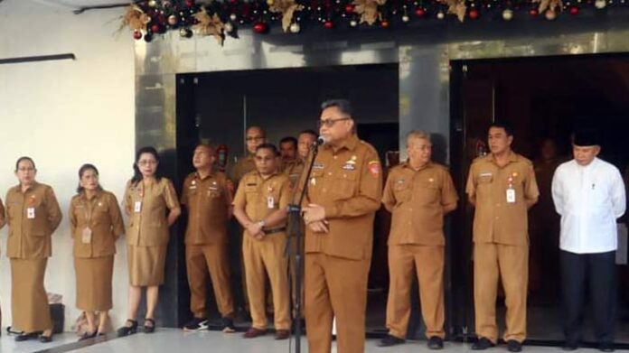 Ambon, Maluku.news – Penjabat (Pj) Wali Kota Ambon, Dominggus N. Kaya, terus mendorong seluruh Organisasi Perangkat Daerah (OPD) di lingkup Pemerintah Kota Ambon untuk bekerja keras memperbaiki tata kelola keuangan, agar keluar dari opini Disclaimer yang selama ini disandang Pemkot dari hasil audit Badan Pemeriksa Keuangan (BPK).